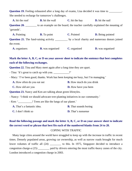 the correct word or phrase that best fits each of the numbered blanks from 24 to 28. COPING WITH TRAFFIC