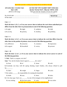 Bài thi: NGOẠI NGỮ ; Môn thi: TIẾNG ANH