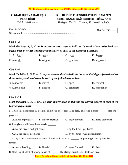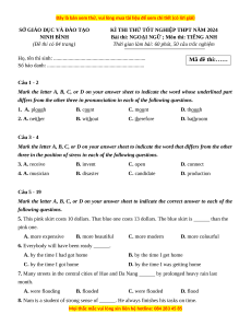 Đề thi thử tốt nghiệp Tiếng Anh Sở GD&ĐT Ninh Bình năm 2024