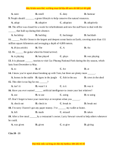 19. After a free meal ______by a restaurant’s owner, Larry Stewart vowed to help others whenever he could. A. was given B. given C. to give D. giving Câu 20 - 21