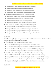 D. Quang said that he was going to call Peter there to play chess with him. Câu 30 - 31