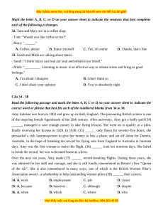 differs from the other three in pronunciation in each of the following questions. 1. A. plough B. count C. mount D. though 2. A. neither B. without C. therefore D. bathroom Câu 3 - 4