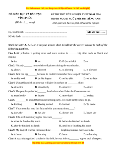 Đề thi thử tốt nghiệp Tiếng Anh Sở GD&ĐT Vĩnh Phúc năm 2024