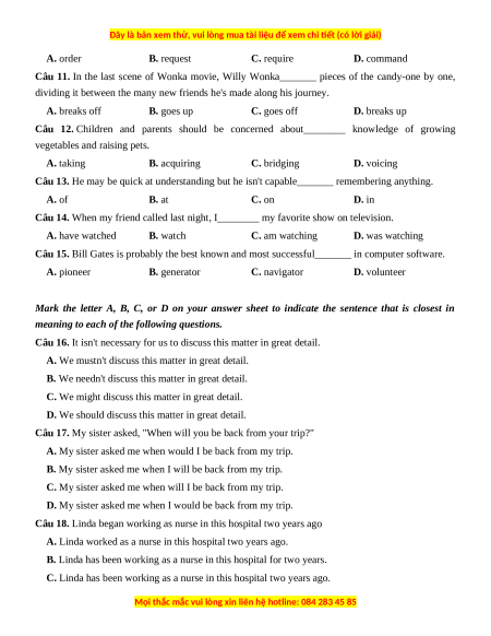 Chúng tôi đảm bảo đủ số lượng đề đã cam kết hoặc có thể nhiều hơn, tất cả có BẢN WORD, LỜI GIẢI CHI TIẾT và tải về dễ dàng.