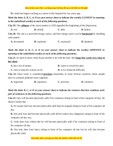 Câu 23. Joey will become physically unfit if he continues sitting in front of his computer all day. He doesn't realize that.