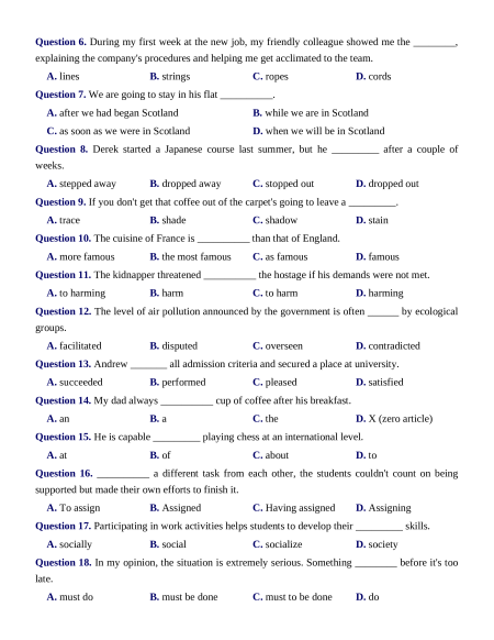 Question 17. Participating in work activities helps students to develop their _________ skills. A. socially B. social C. socialize D. society