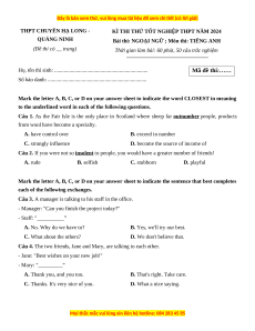 KÌ THI THỬ TỐT NGHIỆP THPT NĂM 2024 QUẢNG NINH
