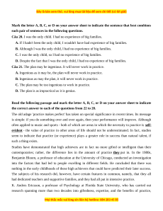 Read the following passage and mark the letter A, B, C, or D on your answer sheet to indicate