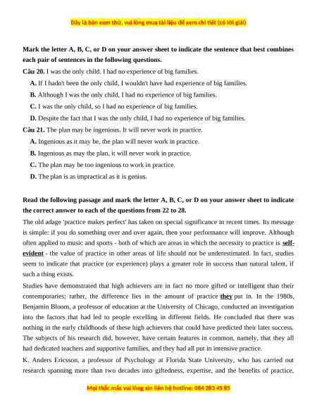 Chúng tôi đảm bảo đủ số lượng đề đã cam kết hoặc có thể nhiều hơn, tất cả có BẢN WORD, LỜI GIẢI CHI TIẾT và tải về dễ dàng.