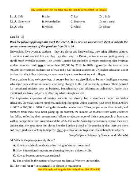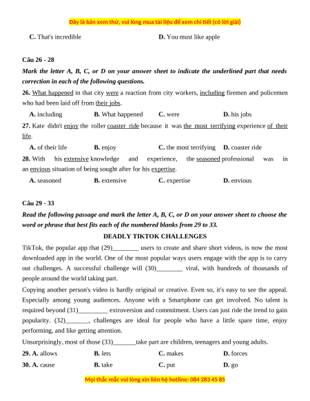 an envious situation of being sought after for his expertise. A. seasoned B. extensive C. expertise D. envious Câu 29 - 33