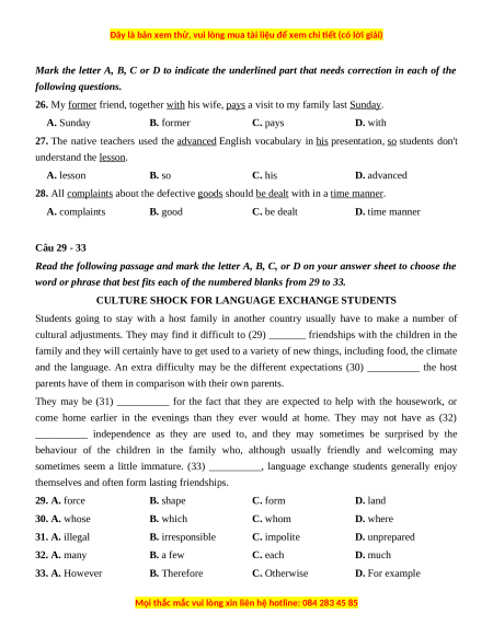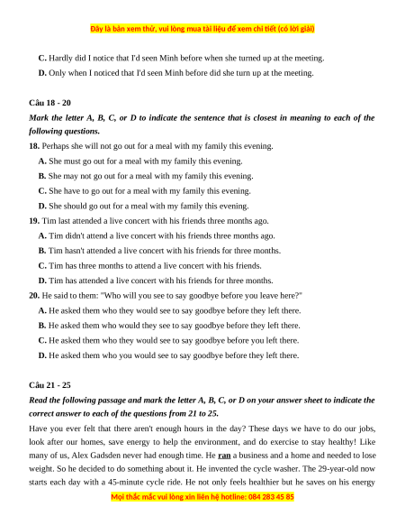 D. He asked them who you would see to say goodbye before they left there. Câu 21 - 25