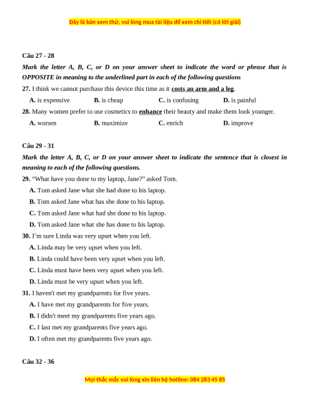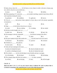 28. Many women prefer to use cosmetics to enhance their beauty and make them look younger. A. worsen B. maximize C. enrich D. improve Câu 29 - 31