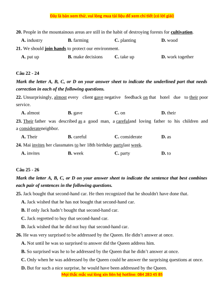 21. We should join hands to protect our environment. A. put up B. make decisions C. take up D. work together Câu 22 - 24