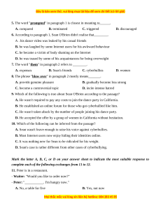 7. The word "them" in paragraph 2 refers to ________. A. expenses B. Sean's friends C. cyberbullies D. women