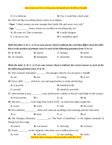 Mark the letter A, B, C, or D on your answer sheet to indicate the most suitable response to