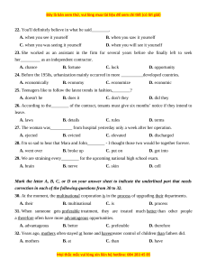 Bài thi: NGOẠI NGỮ ; Môn thi: TIẾNG ANH