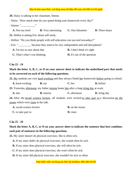 D. It's out of the question Câu 22 - 24