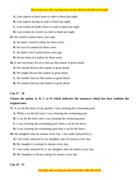 D. We mustn't discuss this matter in great detail. Câu 17 - 18