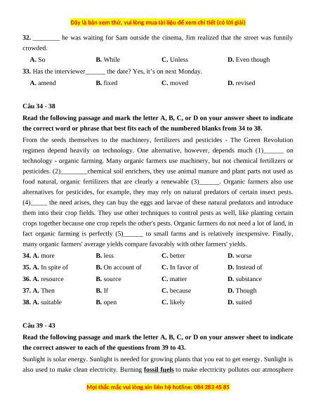 Chúng tôi đảm bảo đủ số lượng đề đã cam kết hoặc có thể nhiều hơn, tất cả có BẢN WORD, LỜI GIẢI CHI TIẾT và tải về dễ dàng.
