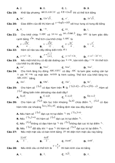 . Thể tích của khối chóp là A. . B. . C. . D. . Câu 22: