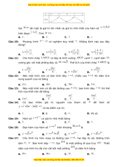 . Giá trị lớn nhất của hàm số trên đoạn bằng A. B. C. D. Câu 35: Cho hình hộp chữ nhật có cạnh , , .