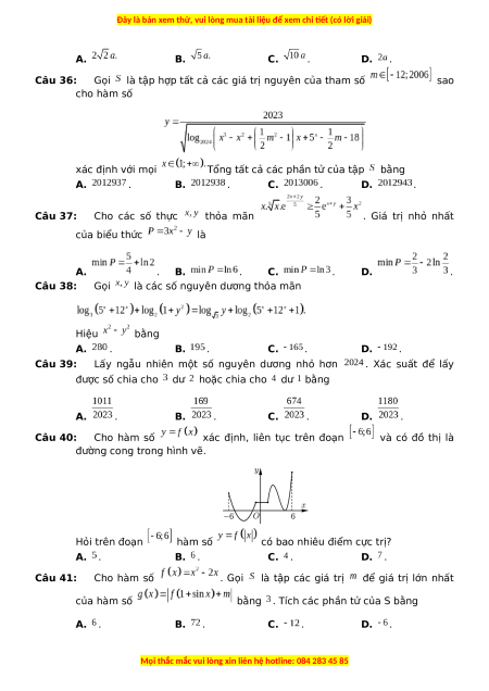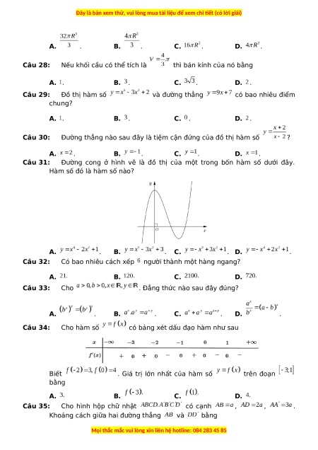 . Đẳng thức nào sau đây đúng? A. . B. . C. . D. . Câu 34: Cho hàm số