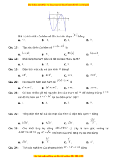 Họ nguyên hàm của hàm số là A. . B. . C. . D. . Câu 21: