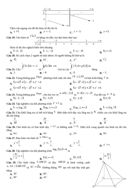 Tiệm cận ngang của đồ thị hàm số đã cho là A. B. C. D. Câu 19. Cho hàm số