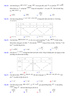 đều và nằm trong mặt phẳng vuông góc với đáy. Tính thể tích của khối chóp . A. . B. . C. . D. . Câu 21. Cho hàm số