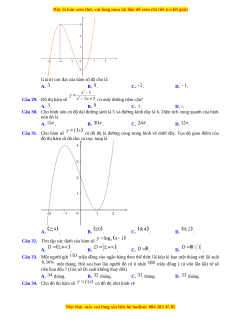 Câu 30. Cho hình nón có độ dài đường sinh là 5 và đường kính đáy là 6. Diện tích xung quanh của hình nón đó là A. . B. . C. . D. . Câu 31. Cho hàm số
