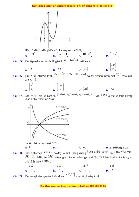 Câu 32. Tìm tập xác định của hàm số A. . B. . C. . D. .