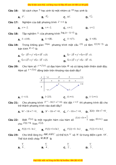 trở thành phương trình nào dưới đây? A. . B. . C. . D. . Câu 22: Biết