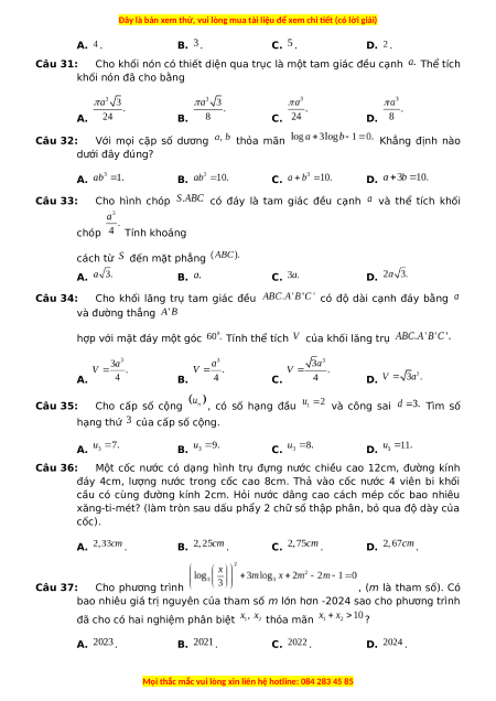 Chúng tôi đảm bảo đủ số lượng đề đã cam kết hoặc có thể nhiều hơn, tất cả có BẢN WORD, LỜI GIẢI CHI TIẾT và tải về dễ dàng.