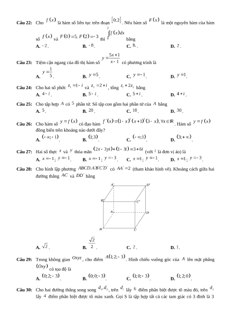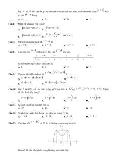 Câu 25: Cho tập hợp có phần tử. Số tập con gồm hai phần tử của bằng A. . B. . C. . D. . Câu 26: Cho hàm số có đạo hàm . Hàm số