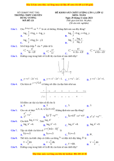 Câu 11. Cho là số thực dương tùy ý. Khẳng định nào sau đây đúng? A. B. C. D. Câu 12. Cho hàm số xác định trên