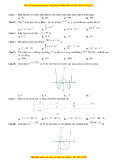 Câu 11: Một lớp học có 20 học sinh. Hỏi có bao nhiêu cách chọn ra hai bạn đi trực nhật? A. . B. . C. . D. .