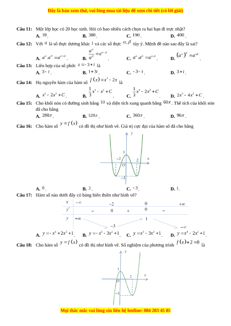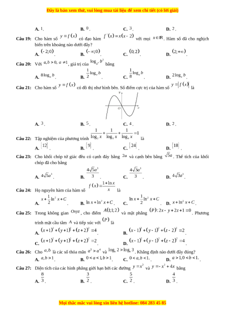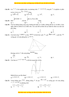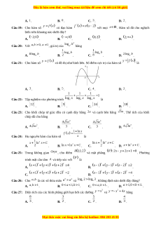 A. . B. . C. . D. . Câu 19: Cho hàm số có đạo hàm với mọi . Hàm số đã cho nghịch