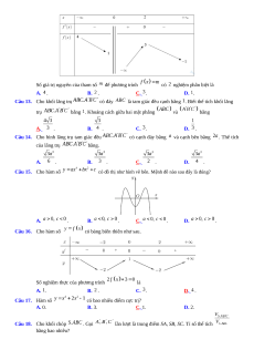 có cạnh đáy bằng và cạnh bên bằng . Thể tích của lăng trụ bằng. A. . B. . C. . D. . Câu 15. Cho hàm số