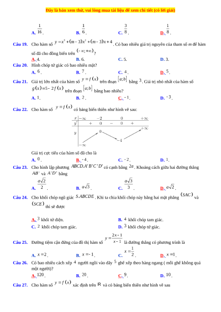 A. . B. . C. . D. . Câu 19. Cho hàm số