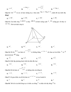 Câu 13. Cho khối chóp có đáy là hình vuông cạnh , vuông góc với đáy và . Thể tích khối chóp là S A D B C A. . B. . C. . D. . Câu 14. Đồ thị của hàm số và đường thẳng