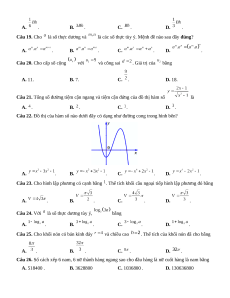 Câu 21. Tổng số đường tiệm cận ngang và tiệm cận đứng của đồ thị hàm số là A. . B. . C. . D. .
