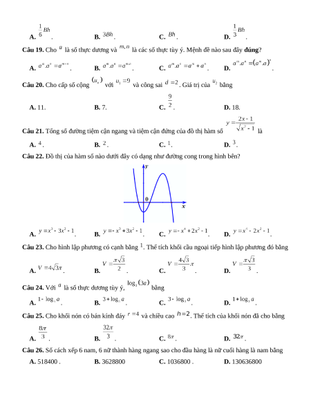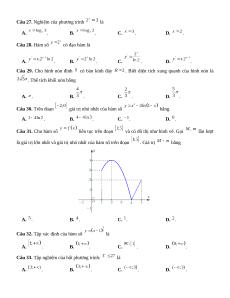 Câu 22. Đồ thị của hàm số nào dưới đây có dạng như đường cong trong hình bên? A. . B. . C. . D. .