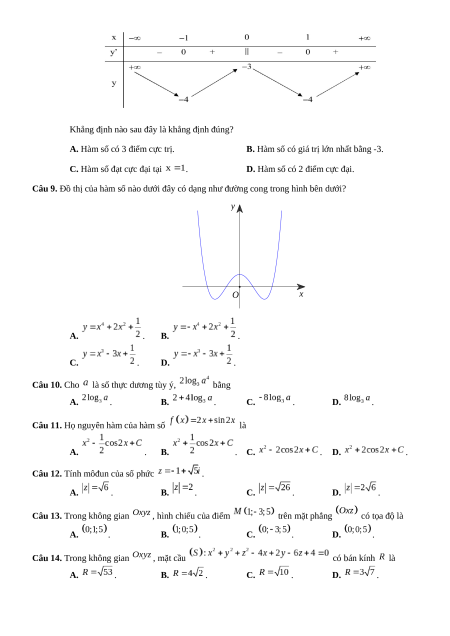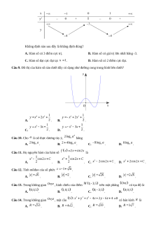Câu 9. Đồ thị của hàm số nào dưới đây có dạng như đường cong trong hình bên dưới? y O x A. . B. . C. . D. .