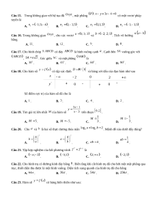 là hình vuông cạnh . Cạnh bên vuông góc với , . Góc giữa và mặt phẳng là A. . B. . C. . D. . Câu 18. Cho hàm số có tập xác định