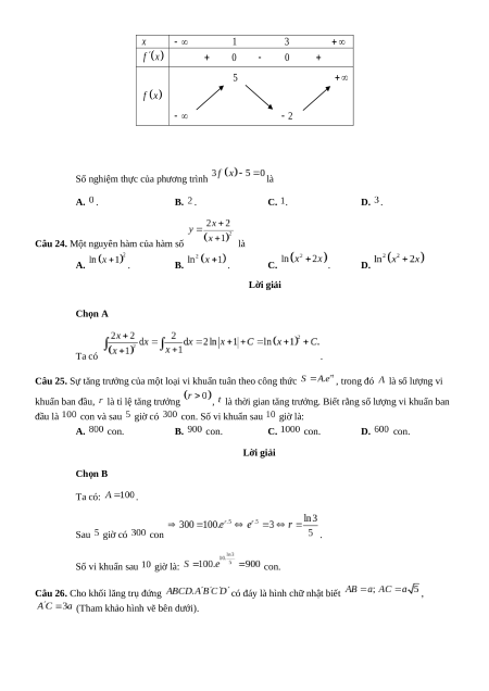Câu 24. Một nguyên hàm của hàm số là A. . B. . C. . D. Lời giải Chọn A Ta có .