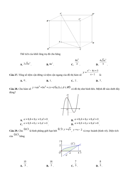 trục, thiết diện thu được là một hình vuông. Diện tích xung quanh của hình trụ đã cho bằng A. . B. . C. . D. . Câu 23. Hàm số
