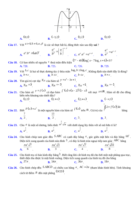 Câu 18. Có bao nhiêu số nguyên thoả mãn điều kiện A. 728. B. 725. C. 726. D. 729. Câu 19. Với