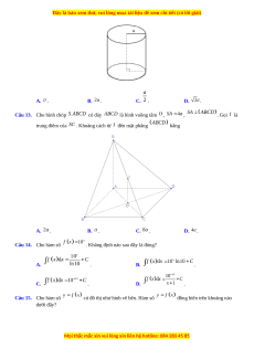 . Khoảng cách từ đến mặt phẳng bằng A. . B. . C. . D. . Câu 14. Cho hàm số