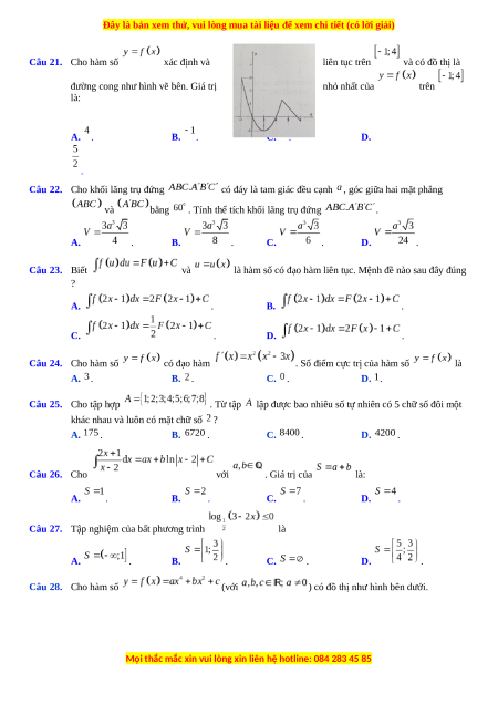 A. . B. . C. . D. . Câu 16. Cho hàm số ,