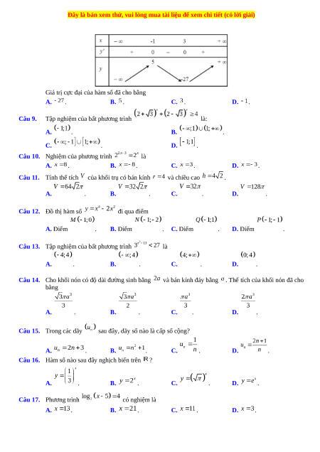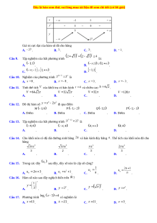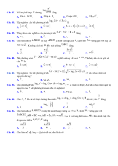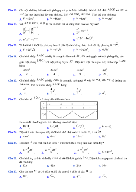 . Tính thể tích khối trụ: A. . B. . C. . D. . Câu 19. Với ,